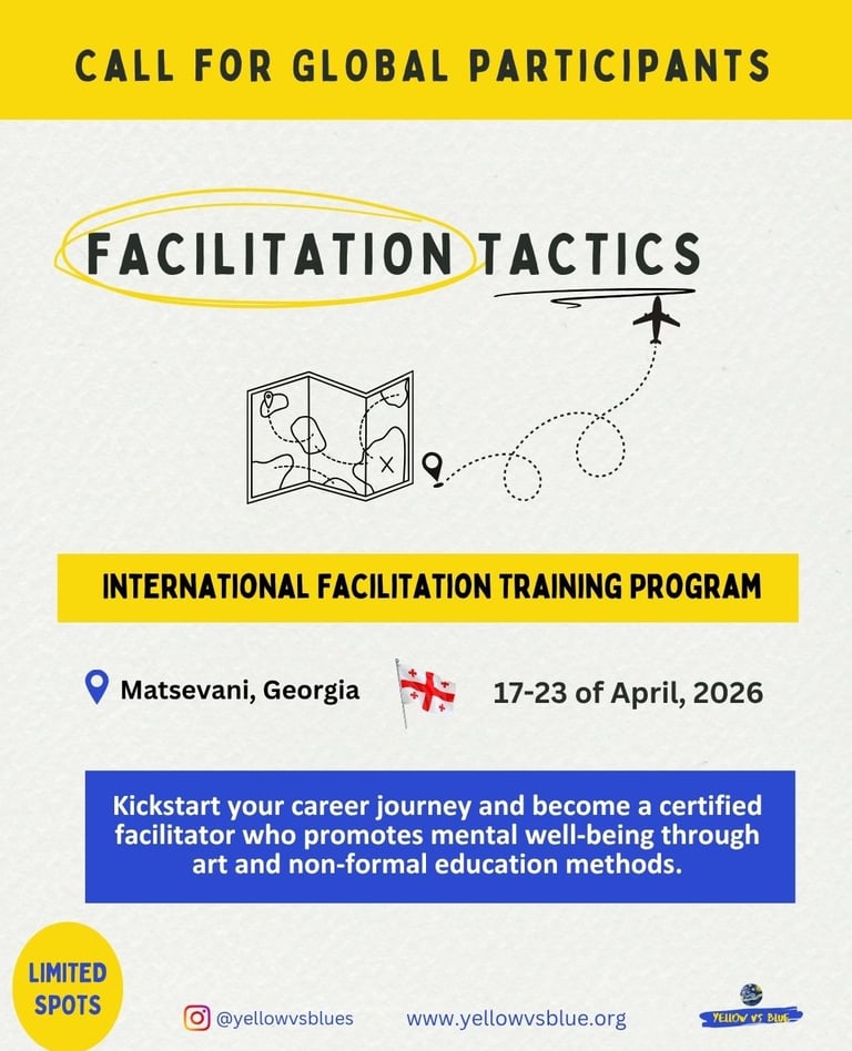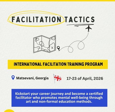 This facilitation training ‘’Facilitation Tactics’’ in Matsevani, Georgia is a week-long, immersive learning journey for people who want to get certified in facilitation in non-formal education methods, and start their career journey to facilitate intercultural programs in their own countries, work institutions, or different countries, understand, practice, and embody the art of facilitation, not as a theory, but as a real, living skill. This training is organized by Yellow vs Blue, the program bridges mental health, art, and creative group processes, combining years of experience from running mental health, wellbeing and intercultural programs around the world.